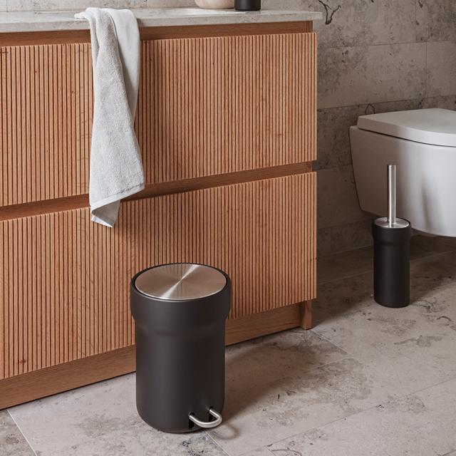 耐久性に優れたマットブラックの粉体塗装スチールを採用し、ステンレススチール製の蓋とペダルが高級感をプラス。