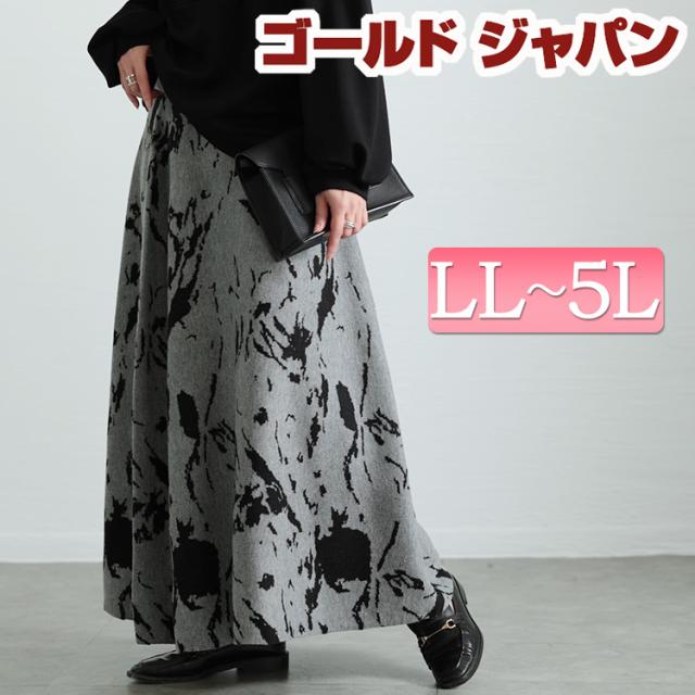 春新作 大きいサイズ レディース ボトムス スカート マーブル柄ジャガードニットフレアスカート ロングスカート ロンスカ ロング マキシ ニット フレア ジャガード マーブル柄 柄 ストレッチ 伸縮 ウエストゴム 長い 冬服 春服 秋服 LL 2L 3L 4L 5L グレー ゴールドジャパン