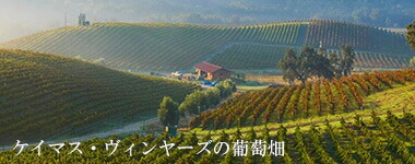 【カリフォルニアで最も歴史ある家族経営のワイナリー ケイマス・ヴィンヤーズは、カリフォルニアで最も歴史ある家族経営のワイナリーのひとつ。創設者のワグナー家はフランス・アルザス地方からの移民で、1906年ナパ・ヴァレーに農地を取得し、 バルク・ワインの製造などで生計を立てていました。1941年に父のチャーリー・ワグナー氏は、現在ワイナリーが位置するラザフォードに約30haの土地を購入。そのうちの4haでブドウの栽培を開始しました。チャーリー氏は、「エステートワインを手掛けたい」という思いに駆られ、1972年に妻ローナ女史と、高校を卒業したばかりの息子チャック氏と共に、ケイマス・ヴィンヤーズを創設。このケイマスという名前は、メキシコ政府の払い下げの土地で「ランチョ・ケイマス」と呼ばれていたことから由来しています。1975年からカベルネ・ソーヴィニヨンの造り手であるランディ・ダン氏、1999年からはドミナスの初代醸造長を務めたクリス・フェルペス氏という錚々たる造り手を醸造責任者に迎え、 ボルドーにも比肩するクラシックワインとしての名声を欲しいままにしました。ナパ独自のテロワールを意識した「ケイマス・スタイル」 ケイマス・ヴィンヤーズでは、2000年までボルドーを意識した造りをしていましたが、2001年からチャック氏がワイナリーを引き継いでからは、ナパのテロワールを表現することを強く意識。カリフォルニアワインらしさ溢れる、より熟したブドウの果実をワインに使用し始めました。そして、若樹のカベルネ・ソーヴィニヨンからより凝縮感や力強さが感じられることから、ブドウ樹は毎15~25年で植替え、ブドウ1株あたりの収穫量を制限。収穫時はブドウの糖度と果実味が十分に熟すのを待つ「ハングタイム」を長く設ける醸造へと変革を遂げました。