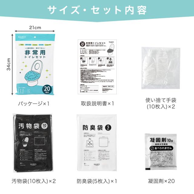 【商品レビューでポイント+5%】 非常トイレセット 20回分 簡易トイレ 防災用品 防災グッズ 防災セット 非常用 介護用 防災 携帯トイレ 台風 災害 U1000 RIORES