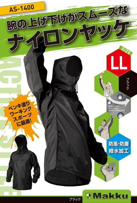 防風 防塵 撥水 マック メンズ ナイロン ヤッケ AS-1400 アウトドアウェア トップス 作業着 作業服 軽量 農業 上着 ブラック 黒 グレー ネイビー 灰色 送料無料 Makku AS1400