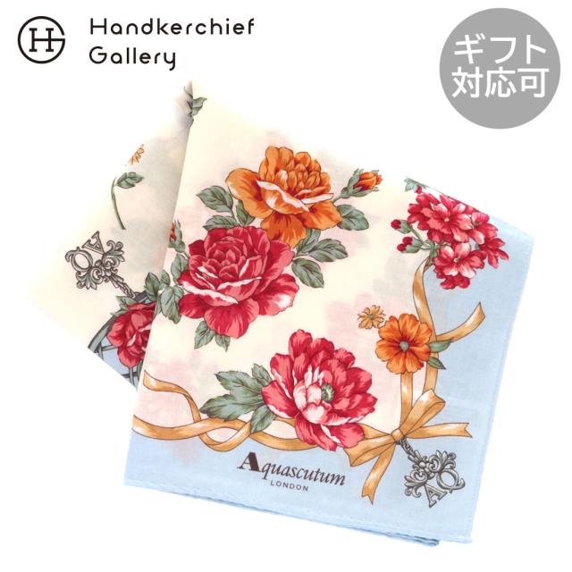 アクアスキュータム 大判 綿シルク プリントハンカチ(58cm)庭園の花々 ブルー 【Aquascutum】
