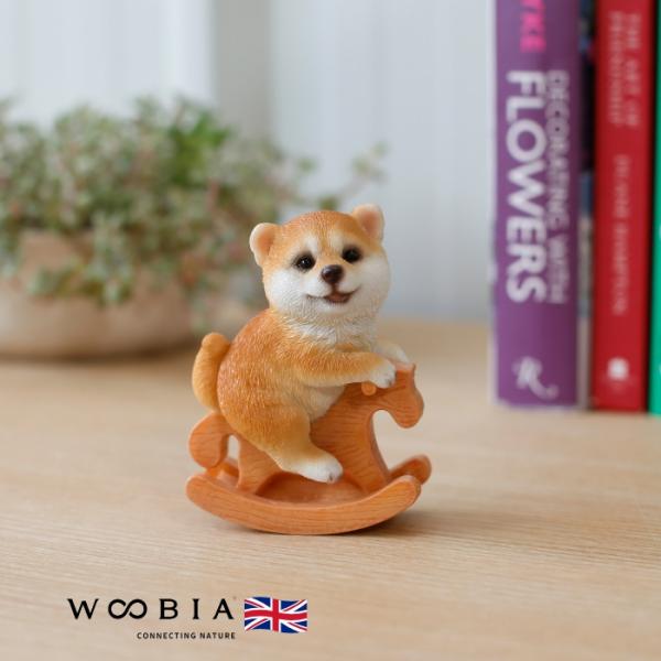 かわいい犬の置物 木馬に乗る柴犬 イヌ 動物 おしゃれ 玄関 インテリア 卓上 ガーデン 北欧 プレゼント woobia ウービア