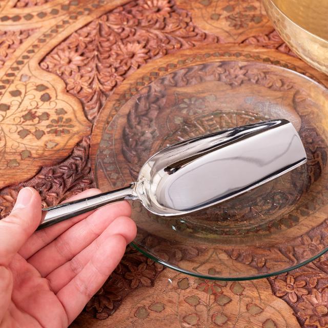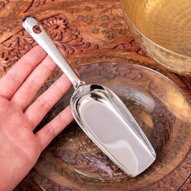 インドの台所から アタ粉スコップ〔約20.5cm〕丈夫なステンレス製 小麦粉 粉物 砂糖などをすくえて便利 / ステンレススコップ 小麦粉スコップ 食材スクープ キッチンシャベル フードスコップ アジア 箸 箸置き スプーン フォーク 食器 うつわ アジアン食器 エスニック食器