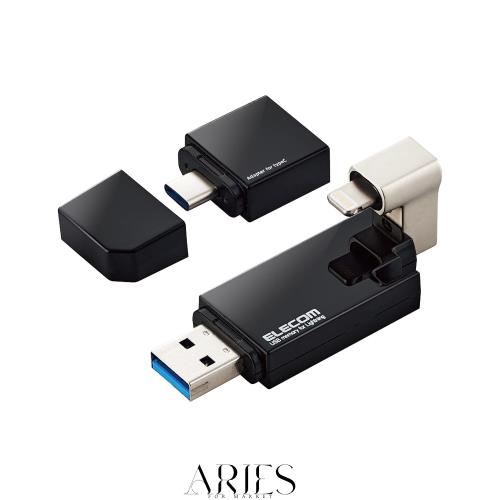 エレコム USBメモリ 32GB iPhone/iPad対応 [MFI認証品] ライトニング Type-C変換アダプタ付 ブラック MF-LGU3B032GBK