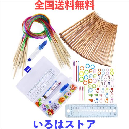 セット内容: 輪針、手あみ針、段数マーカー、段数リング、目数リング、開口段数リング、金属ピン、棒針キャップ、縫い針、はさみ、定規、巻尺。完全な編み物セットで、より簡単に手仕事をできます。