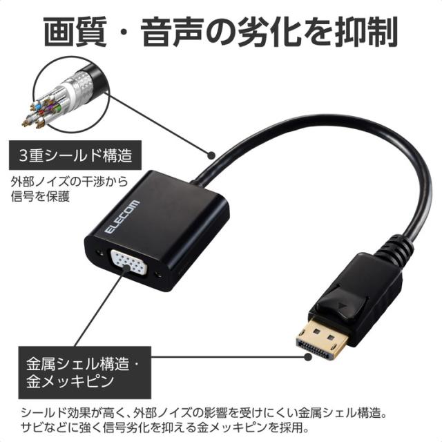 エレコム DisplayPort - VGA 変換 アダプタ DP ディスプレイポート プラグ to ミニD-Sub15pin ポート 最大解像度1920×1200px Windows Mac ブラック ELECOM(代引不可)【送料無料】