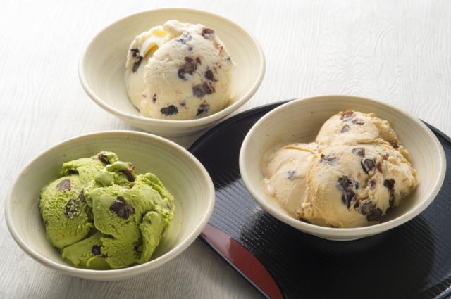 天保5年(1834年)創業「花園万頭」。発売以来七十余年を数える花園万頭の代表銘菓「ぬれ甘なつと」。手間暇かけてじっくりと蜜漬けしてお造りしたぬれ甘なつとを風味豊かなアイスにトッピングしました。