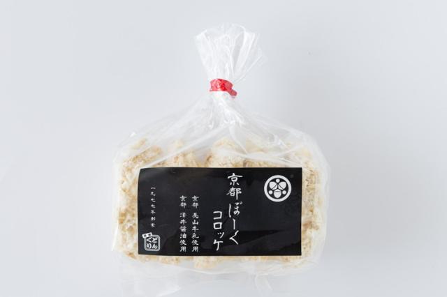 京都のブランド畜産物京都ぽーく使用。コロッケのタネの味付けには、京都美山の美山牛乳、京都の老舗、澤井醤油本店の濃口お醤油を使用しました。衣にもこだわり、外はサクっと中はしっとりとした甘みと旨みが詰まった京風コロッケです。