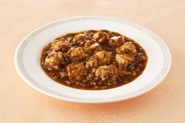 原材料(アレルギー表記含む):冷凍豆腐(大豆(国産)、でん粉)、大豆油、豚肉、清酒、長ねぎ、豆板醤、醤油、ポーク・チキンエキス、香辛料、トウチ、砂糖、チキンパウダー、味噌、にんにく、オイスターソース、しょうが/糊料(加工デンプン)、調味料(アミノ酸等)、酸化防止剤(ビタミンE)、凝固剤(塩化マグネシウム)、カラメル色素、酸味料、香料、(一部に小麦・大豆・豚肉・鶏肉・りんごを含む)