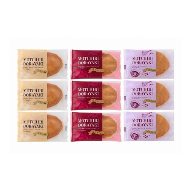 内容量:もっちりどら焼き(クリーム、苺クリーム、小豆クリーム)×各3