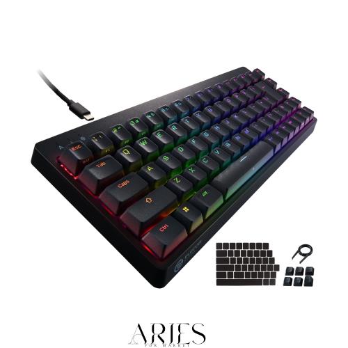 ガンシューティング系ゲーム(FPS)の高速な指の動きにもぴったりハマるサイズ感、キー配列、キー形状を精緻に作り上げた、青軸搭載の65%サイズゲーミングキーボード、LED搭載モデルです。