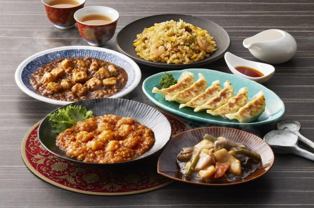 原材料(アレルギー表記含む):【乾焼蝦仁】えび(タイ産)、トマトケチャップ、野菜(トマト、ねぎ、しょうが、にんにく)、大豆油、卵、砂糖、でんぷん、豆板醤、小麦粉、酒、チューニャン(もち米、酒、米麹、砂糖)、ポーク・チキンエキス、食塩、醸造酢、香辛料、醤油、脱脂粉乳、揚げ油(大豆油)/増粘剤(加工でん粉、増粘多糖類)、調味料(アミノ酸等)、ベーキングパウダー、酸味料、(一部に小麦・卵・乳成分・えび・大豆・豚肉・鶏肉を含む)【四川麻婆豆腐】冷凍豆腐(大豆(国産)、でん粉)、大豆油、豚肉、清酒、長ねぎ、豆板醤、醤油、ポーク・チキンエキス、香辛料、トウチ、砂糖、チキンパウダー、味噌、にんにく、オイスターソース、しょうが/糊料(加工デンプン)、調味料(アミノ酸等)、酸化防止剤(ビタミンE)、凝固剤(塩化マグネシウム)、カラメル色素、酸味料、香料、(一部に小麦・大豆・豚肉・鶏肉・りんごを含む)【餃子】野菜(キャベツ(国産)、白菜、にら、長ねぎ、にんにく、しょうが、玉ねぎ)、豚肉、ラード、豚脂、粒状大豆たん白、オイスターソース、植物油(ごま油、大豆油)、醤油、チキンパウダー、でん粉、味噌、昆布茶、ゼラチン、砂糖、食塩、香辛料、焼酎、皮(小麦粉、還元水飴、大豆油、こんにゃく粉)/酒精、トレハロース、調味料(アミノ酸等)、重曹、カラメル色素、香料、酸味料、(一部に小麦・豚肉・大豆・ごま・鶏肉・ゼラチンを含む)【ふっくら五目炒飯】精白米(国産)、炒り玉子、えび、焼豚、液卵、ねぎ、乾しいたけ、しょうゆ、中華スープの素、砂糖、食塩、食用油脂、香味油、粉末しょうゆ、でん粉、香辛料、いため油(なたね油、食用調合油)/調味料(アミノ酸等)、加工でん粉、着色料(カラメル、クチナシ)、pH調整剤、香辛料抽出物、(一部に小麦・卵・えび・ごま・大豆・鶏肉・豚肉を含む)【本格八宝菜】魚介類(イタヤ貝、えび、いか)、野菜(白菜(国産)、いんげん、たけのこ、にんじん)、豚肉、きくらげ、ポーク・チキンエキス、マッシュルーム、ふくろたけ、大豆油、清酒、ハム、しいたけ、コーンスターチ、醤油、食塩、オイスターソース、香味油、砂糖、中国醤油、チキンパウダー、香辛料/増粘剤(加工でん粉)、調味料(アミノ酸等)、着色料(コチニール、ラック、カラメル)、香料、酸味料、発色剤(亜硝酸Na、硝酸K)、(一部に小麦・卵・乳成分・えび・大豆・豚肉・いか・鶏肉・りんごを含む)