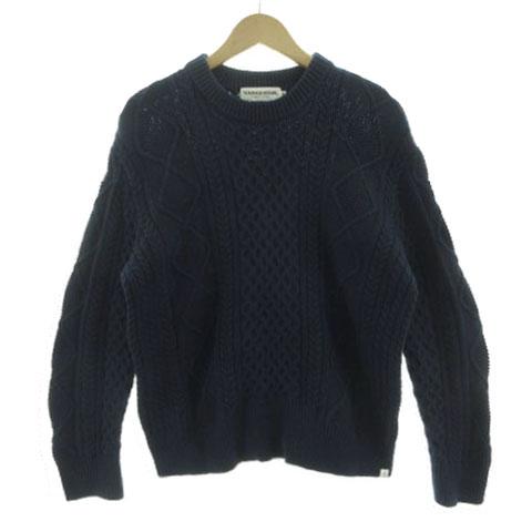 【中古】ヴァンキッシュ VANQUISH ニット セーター 長袖 ケーブル編み ウール混 ネイビー 紺 S メンズ