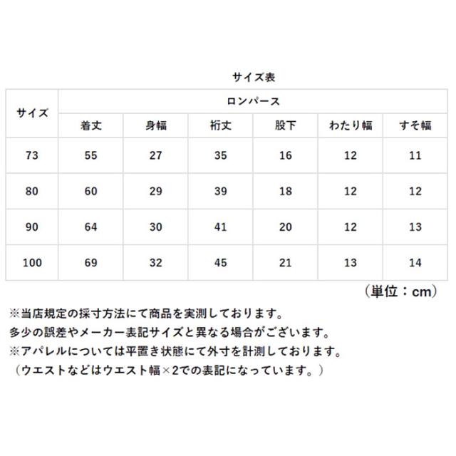 | サイズ | [ベビー] ・73cm ・80cm ・90cm ・100cm ※サイズについて詳細は、商品画像の中にあるサイズ表をご覧くださいませ。 |
