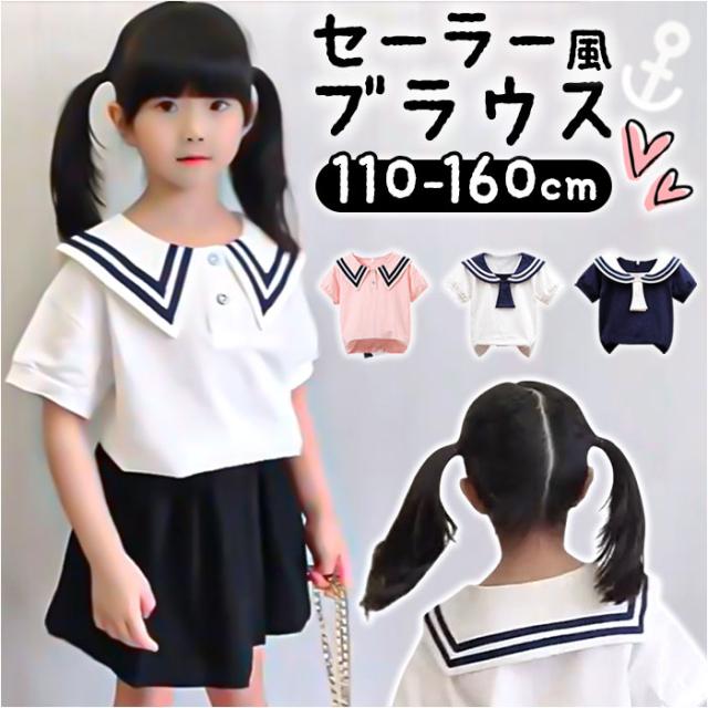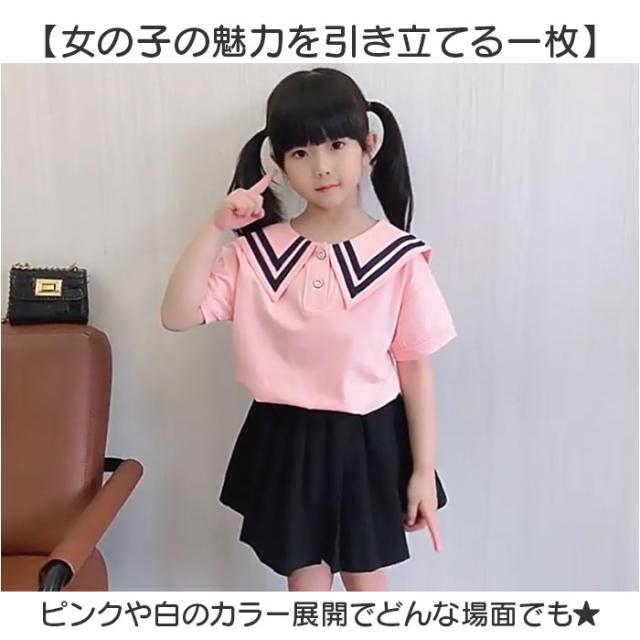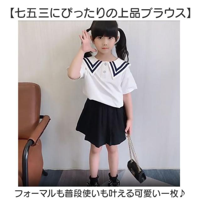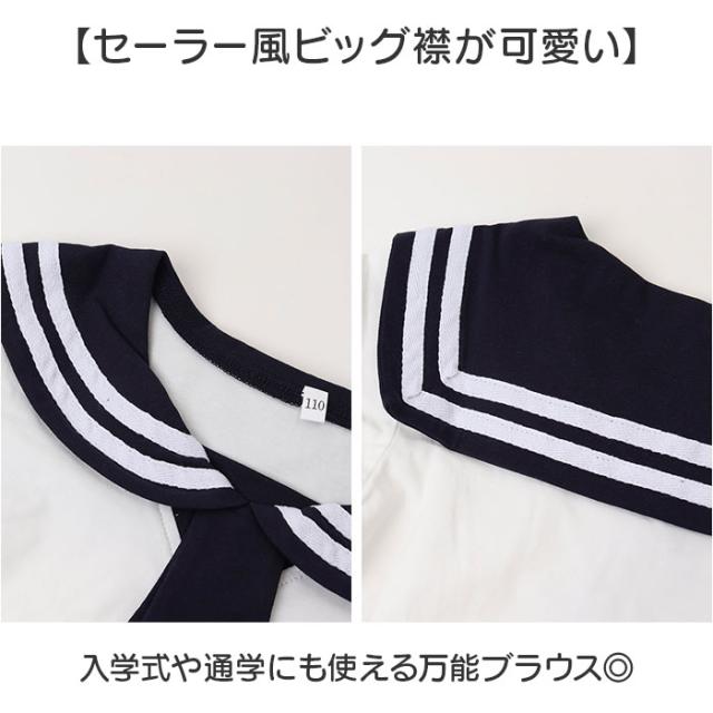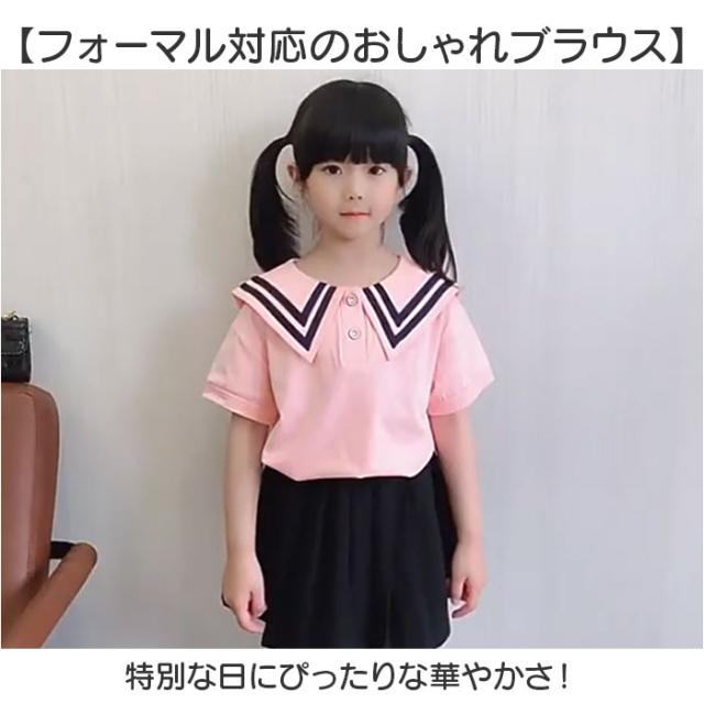 ブラウス キッズ 女の子 通販 シャツ トップス 半袖ブラウス 半袖シャツ フォーマルブラウス 通園 通学 コットン 綿 通気性 セーラー風 ビッグ襟 おしゃれ かわいい 可愛い 入学式