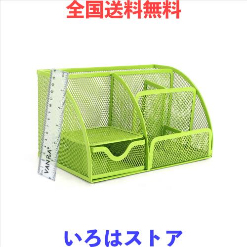 VANRA? デスクオーガナイザー ペン立て 金属メッシュ ペンスタンド 引き出し付き ペンケース 多機能 収納ボックス 筆箱 小物入れ