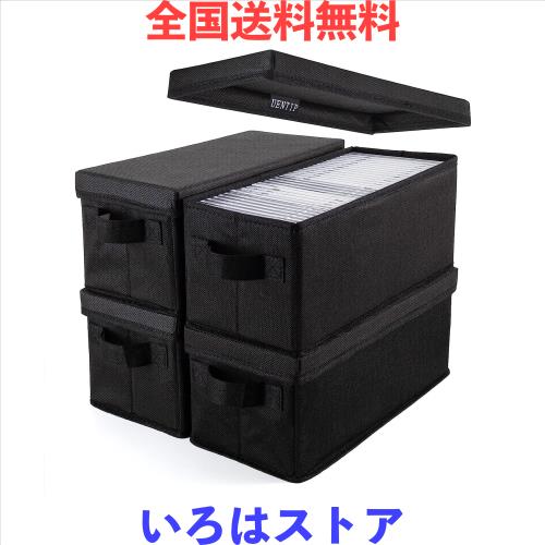 収納CDケースポータブルディスク収納ケース大容量CDと衣類おもちゃ収納 (4個セット, ブラック)