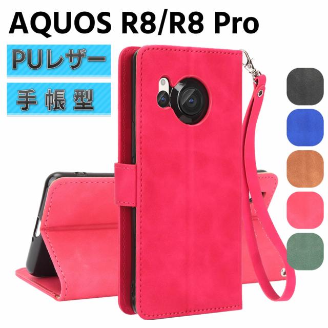AQUOS R8 SH-52D /R8 Pro SH-51D ケース スマートフォンケース 手帳型ケース ストラップ付 二つ折りケース カバー マグネット 定期入れ ポケット シンプル スマホケース TPUケース スタンド機能 携帯ケース