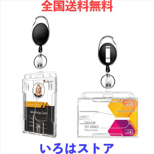 Teskyer IDカードホルダー 格納式バッジリール クリップ プラスチック 透明 バッジホルダー付き クリア 硬質 ネームホルダー パスケース