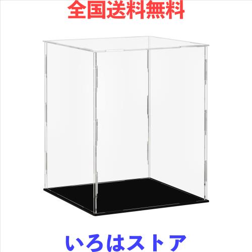 AMEITECH 収納ケース ボックス フィギュア ケース 背面ミラー コレクションケース uvカット (台座黒, 横長20*奥行20*高さ25cm)