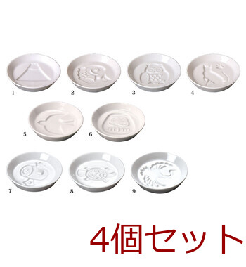 和食器 白磁 文字入醤油皿 富士山 鯛 ふくろう ねこ ちどり だるま 他全9柄 日本製 美濃焼 4セット 送料無料