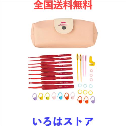 【セット内容】かぎ針×9、縫い針×4、段数マーカー×10、段数リング×9、ステッチカッター×1、収納袋×1、かぎ針編みを楽しむ初心者からプロまで、幅広くお使いいただけるアイテムをセットにしました。 かぎ針編みやロープ編み用の針、編み目をチェックするための編み物アクセサリー、消耗を防ぐための編み物道具など、編み物の必需品が含まれている