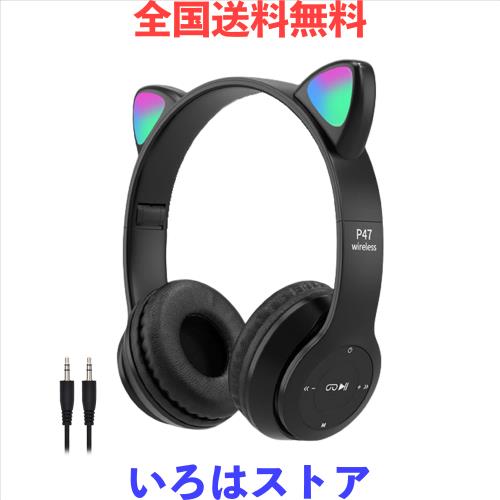 子供用ヘッドホン Megadream無線/有線ヘッドホン 85dB安全音量制限 マイク付き 猫耳LEDライトデザイン Bluetooth5.0/ワイヤ長 1m TFカー