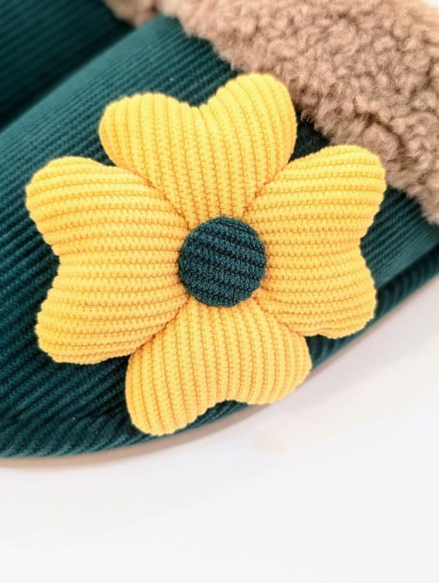 存在感のある花モチーフが可愛い、あったか素材のスリッパです。