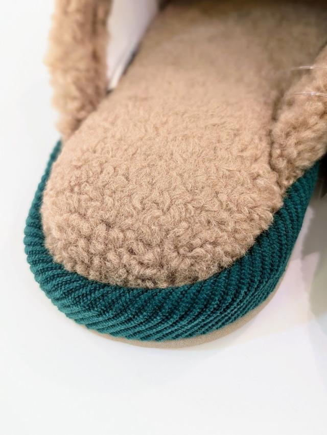 中板と甲裏はシープボアを使用しており、とってもあったか。足先の冷え対策にもオススメのスリッパです。