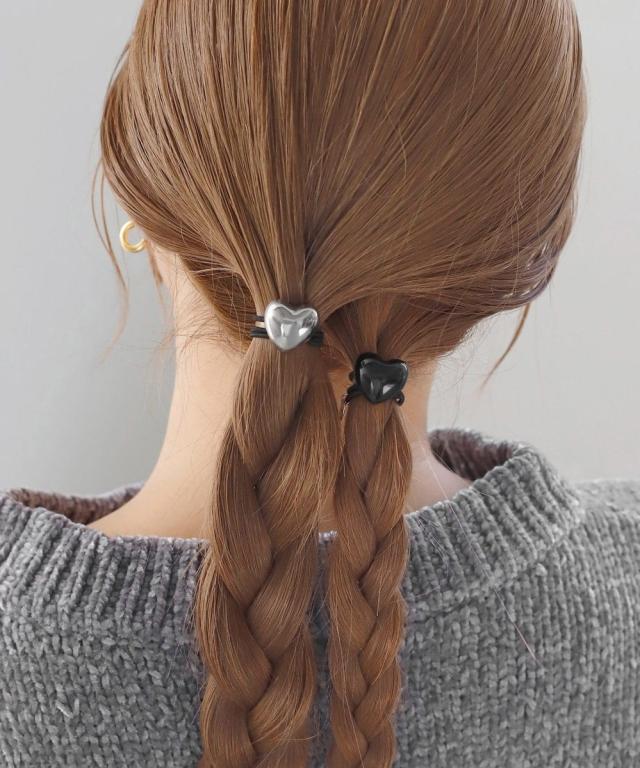 小ぶりで落ち着いたカラーのハートモチーフが、大人可愛いうしろ姿に導くヘアゴム。