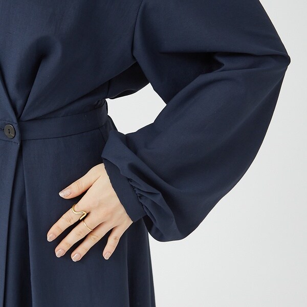 シンプルながらもディテールにこだわりが光るカシュクールワンピースは、