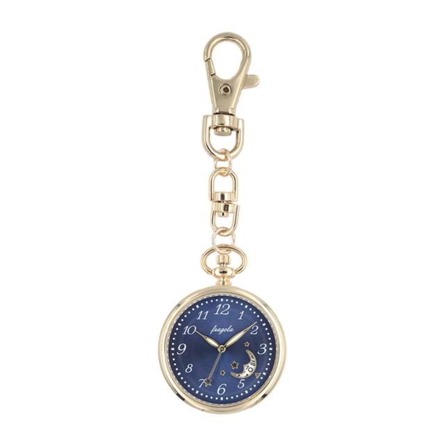 【サクッと取り付けて可愛く携帯】チャーム感覚で持ち歩ける♪上品な印象の「fragola ムーンデイトチャームウォッチ」。【ナスカンでワンタッチ取り付け】バッグの金具やベルトループなどに装着。お仕事柄、腕時計を見に付けられない方にも!【視認性のシンプルな文字盤】時刻を確認しやすい文字盤デザイン。文字盤ケース横のつまみで、簡単に時刻調節が可能。【おしゃれなカレンダー機能付き】文字盤に配置された月のカタチの小窓から、日付を確認。夜空をイメージした仕上がり。【安心の日本メーカー製ムーブメント】ムーブメントは高い性能を誇る日本メーカー製。1秒ごとに時を刻むステップ秒針は先が星型。【星や月のモチーフが好きな方に】ブルーの背景に映えるさりげないモチーフ☆世代問わず使えて、自分用にもギフトにもおすすめ。