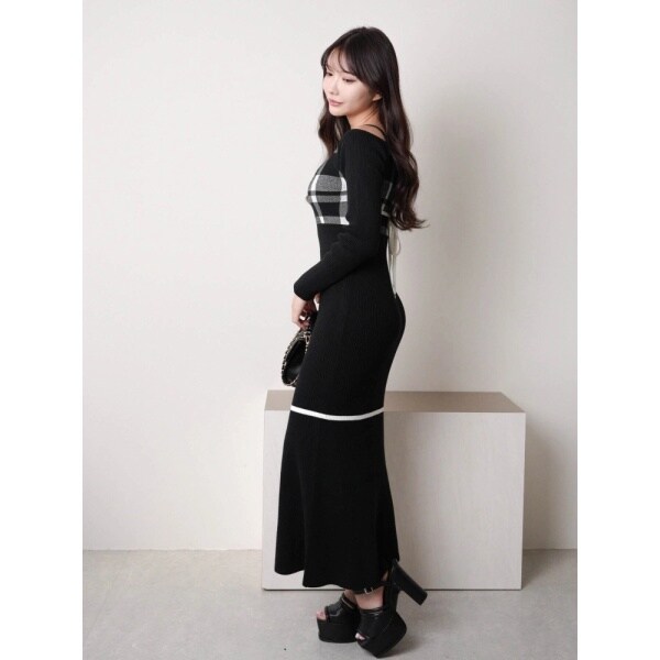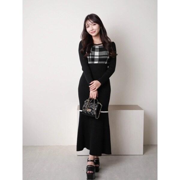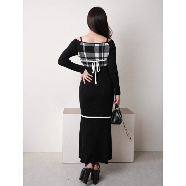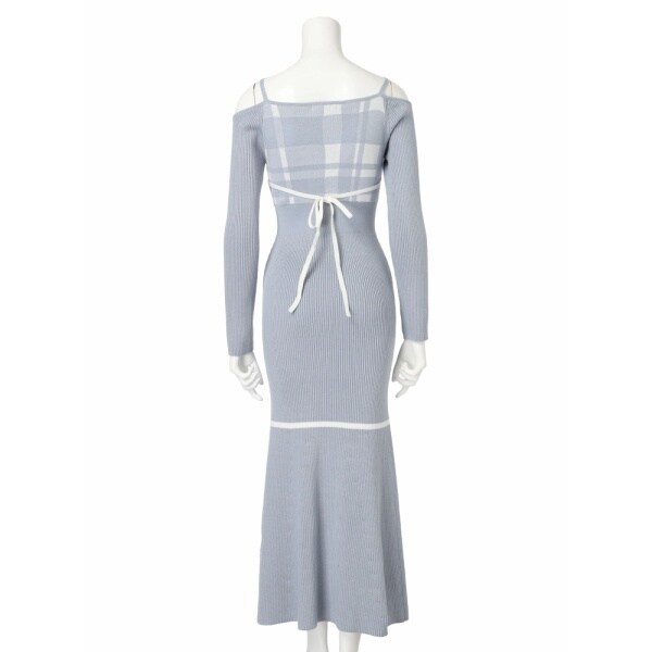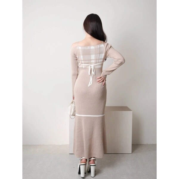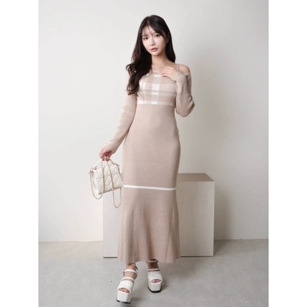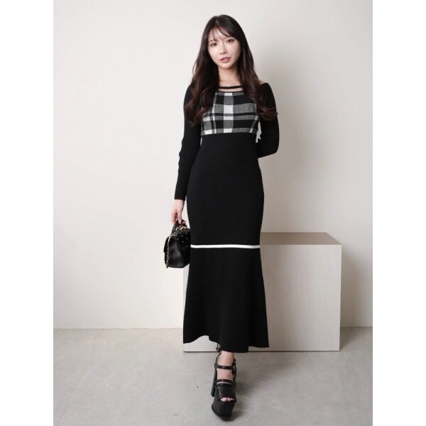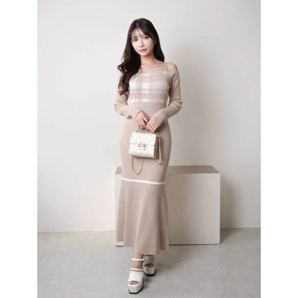 チェックジャガードオフショルマーメイドワンピース