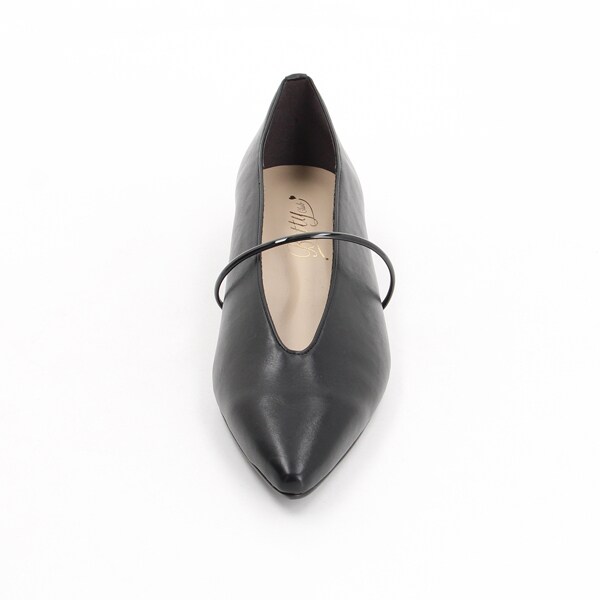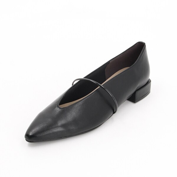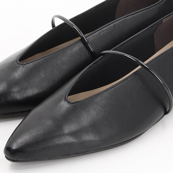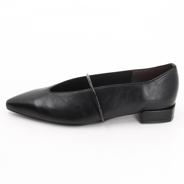 シャープなスクエアトゥと華奢見えする甲のUカットデザインが、フェミニンさをプラス。