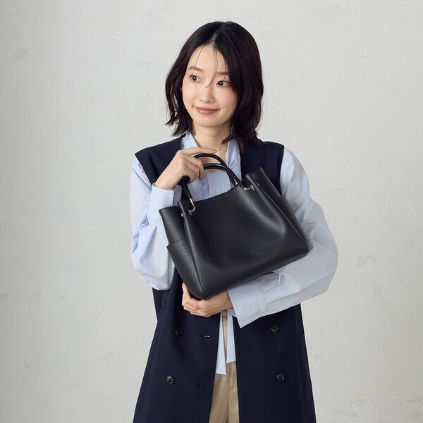 ・使いやすいワンカラーでハンドルをクロコ型押しにし、アクセントにしています。