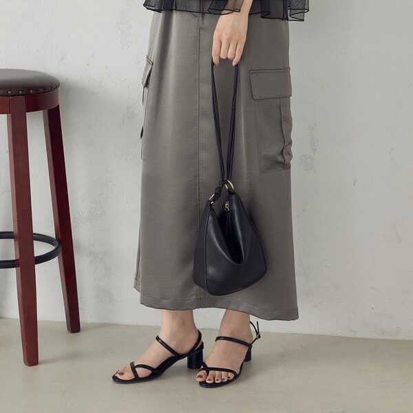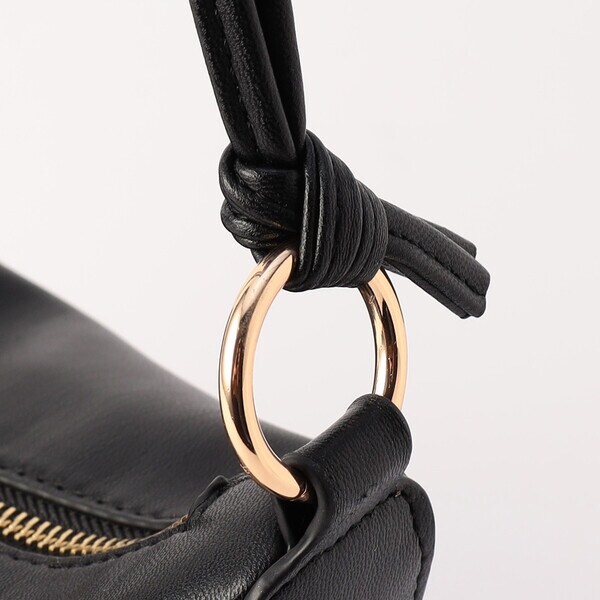 ・キラッと輝くサイドの丸カンとメタルファスナーがアクセント。