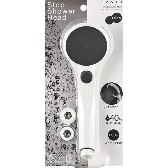 三栄水栓 SANEI 節水ストップシャワーヘッド PS3230-80XA-MW2 全身を包み込む「ワイドシャワー」の心地よさ!!