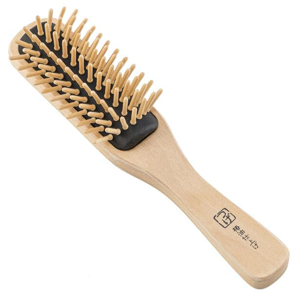 | 椿油(保湿成分)を浸透させたブラシ・くしで髪をとくことにより、まとまりのある艶やかな髪へ近づきます。弾力のあるラバークッションと先の丸いウッドピンなにで頭皮を適度に刺激します。木製ピンなので静電気が起きにくく、椿油仕上げで髪通りなめらかです。 |