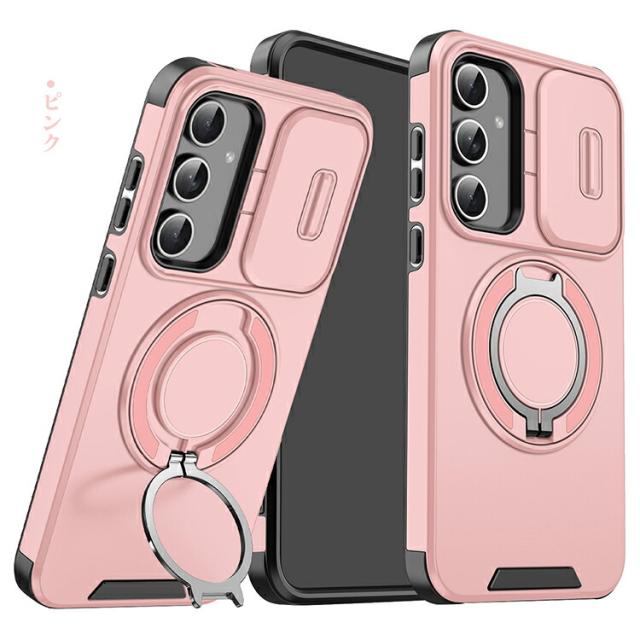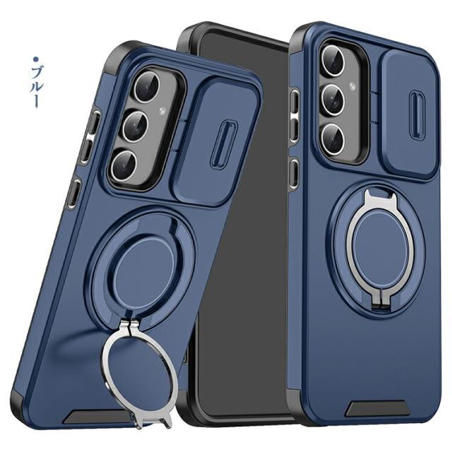Galaxy A56 5G ケース 耐衝撃 カバー マグネット式車載ホルダ対応 スライド式カメラレンズカバー付き レンズ保護 スタンド機能 リング付き 2重構造 Samsung サムスン ギャラクシー A56 5G アンドロイド おすすめ おしゃれ