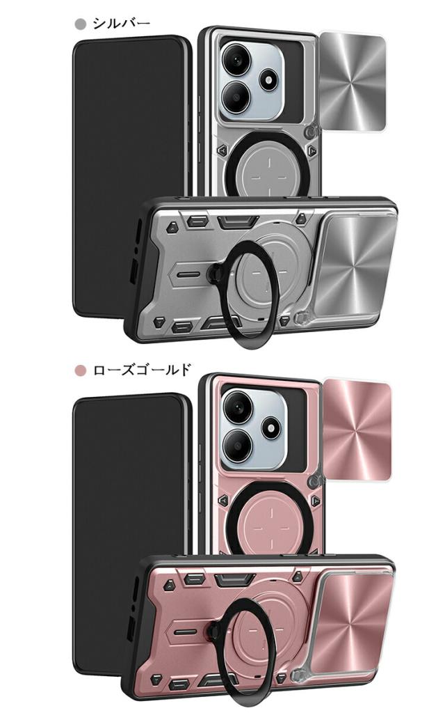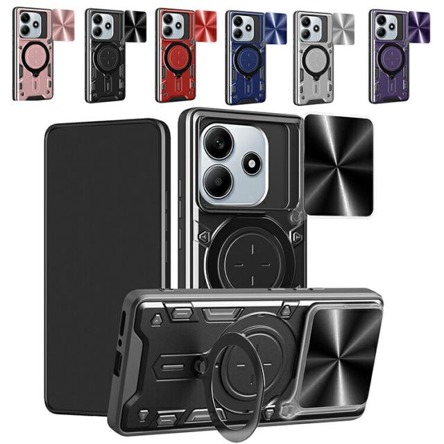 Redmi Note 14 ケース Note 14 Pro カバー 耐衝撃 マグネット式車載ホルダ対応 スライド式カメラレンズカバー付き レンズ保護 スタンド機能 リング付き 2重構造 ストラップ穴 小米 シャオミ レッドミー ノート14/14 プロ アンドロイド おすすめ おしゃれ