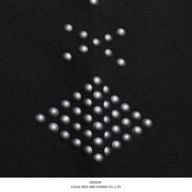両サイドには、スタッズで×とダイヤの反復デザインをオン。