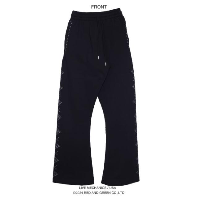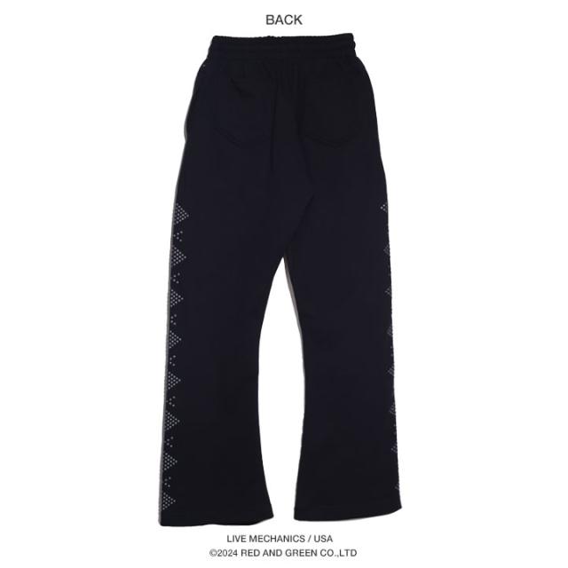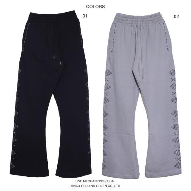 LIVE MECHANICS フレアパンツ ベルボトム フレアー ブーツカット ラッパズボン スウェットパンツ メンズ 黒 グレー 大きいサイズ ライブメカニクス ロングパンツ 英字 スタッズ ダイヤ ライン b系 ヒップホップ ストリート系 ハイ ブランド 新作 LMPHP1
