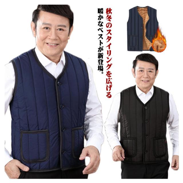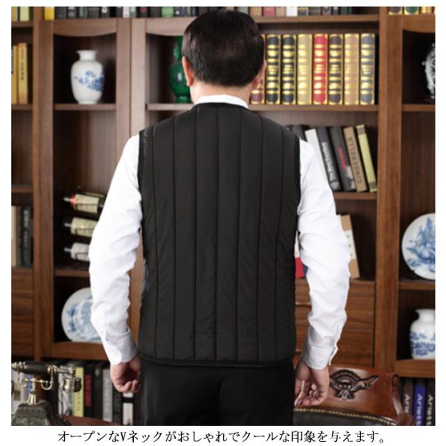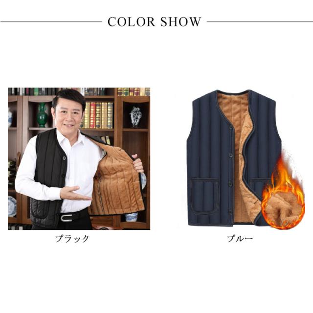 中綿ベスト メンズ ベスト 防寒ベスト 裏ボア 裏起毛 ボアベスト 秋冬 ノースリーブ インナーベスト ルームウェア 厚手 中綿入り Vネック ビジネス 釣り 防寒 防風 保温 軽量 作業着 ポケット付き カジュアル 送料無料