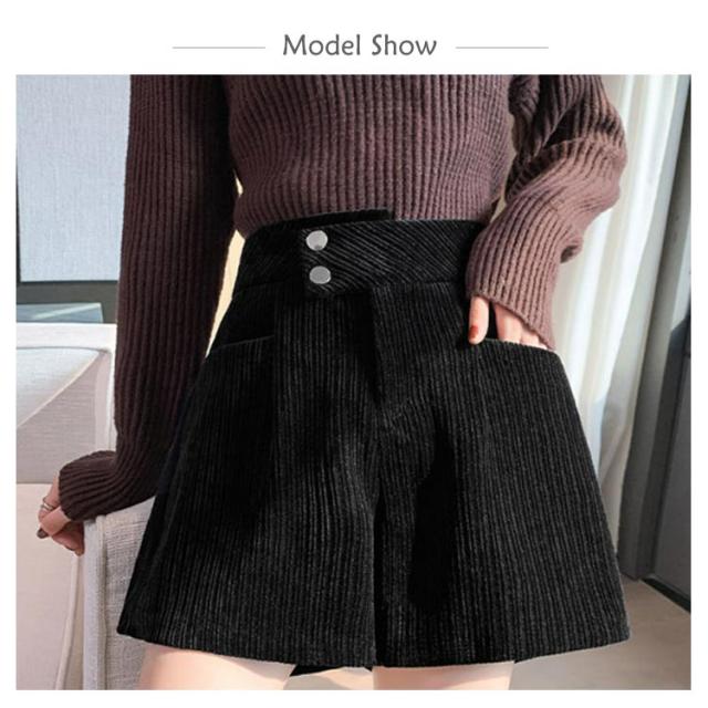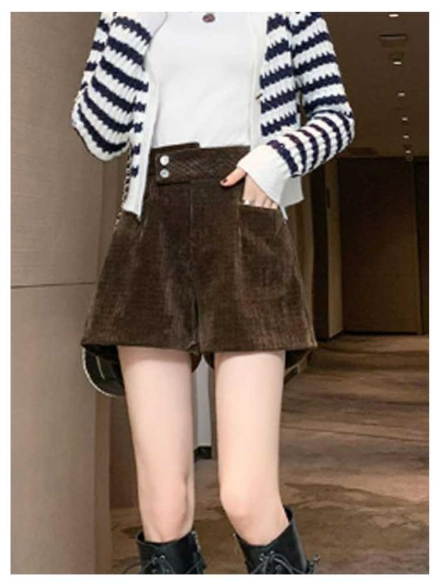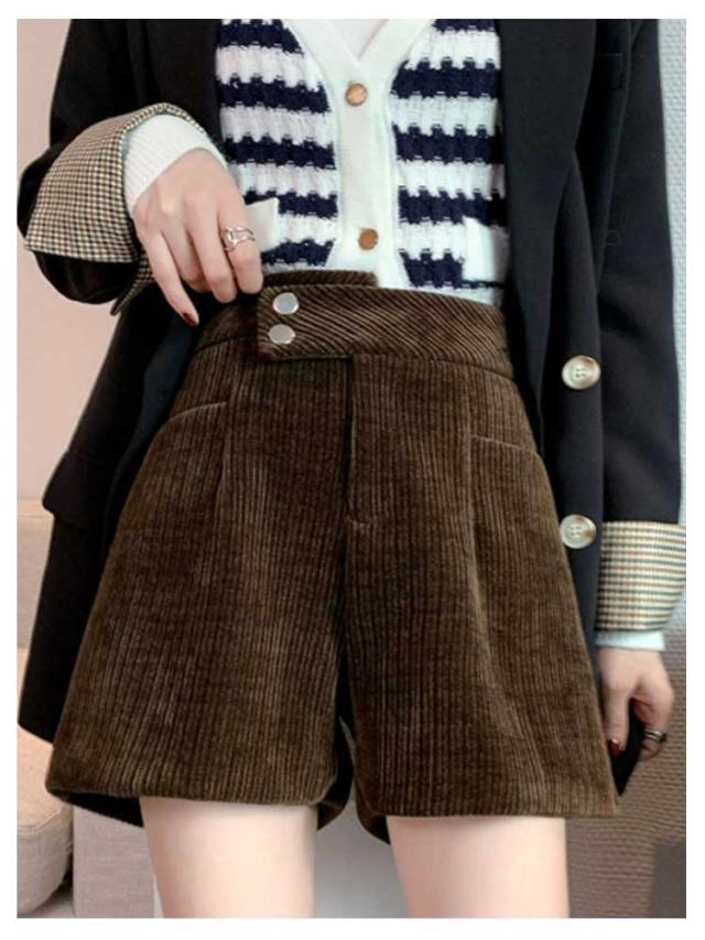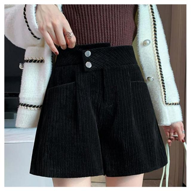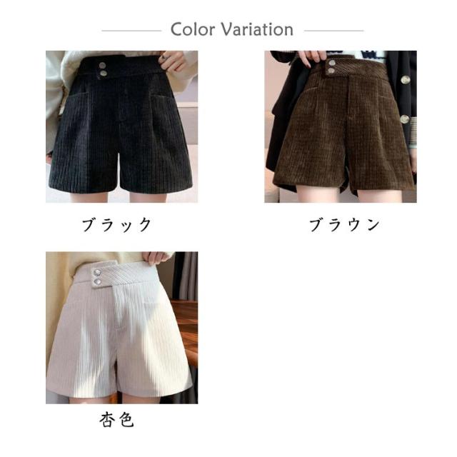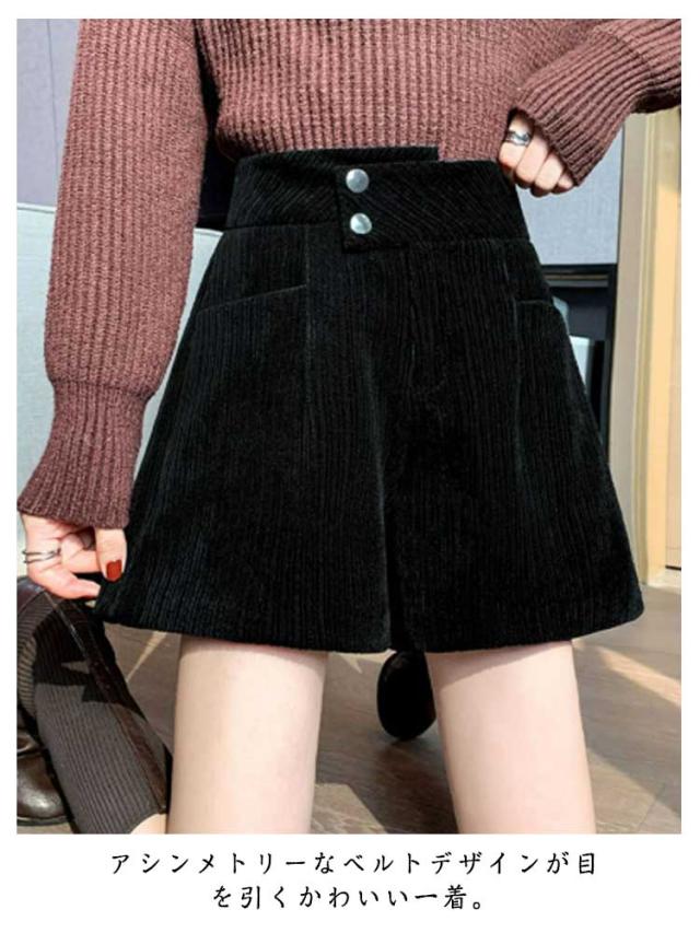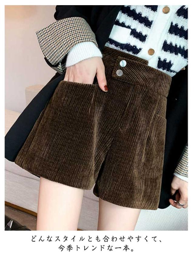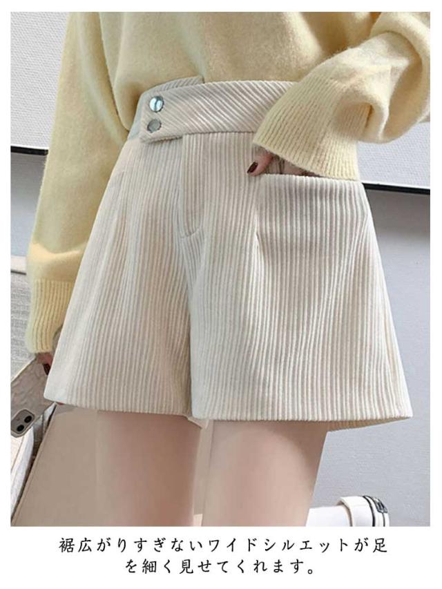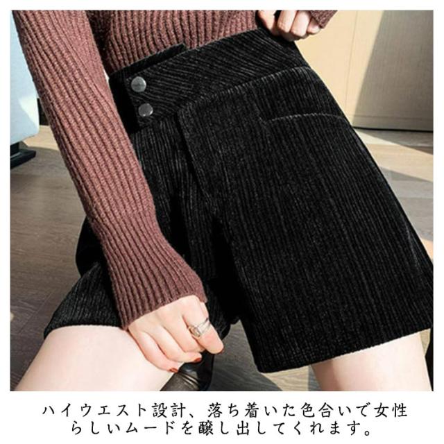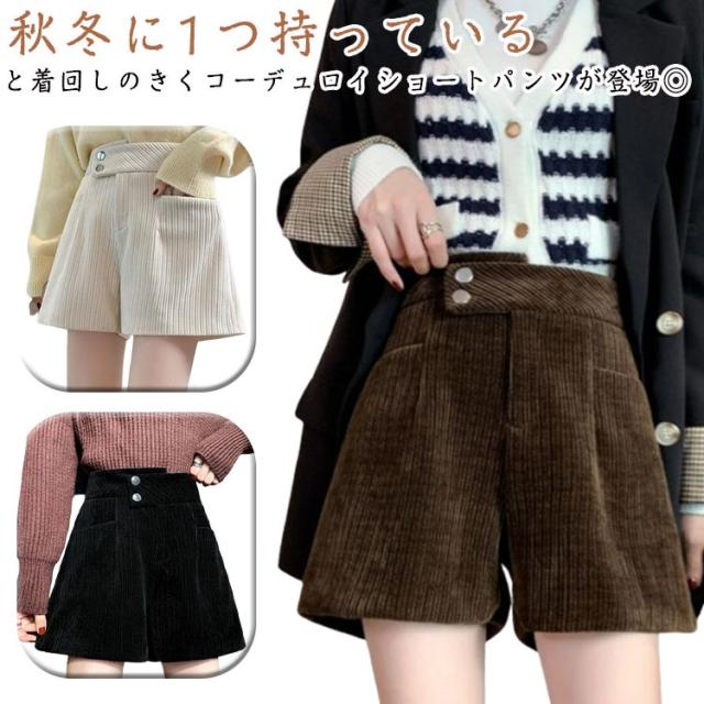ハーフパンツ 送料無料 ショートパンツ パンツ ハイウエスト 秋冬 コーデュロイ ワイド 短パン コーデュロイ ウエストゴム 楽チン ゆったり
