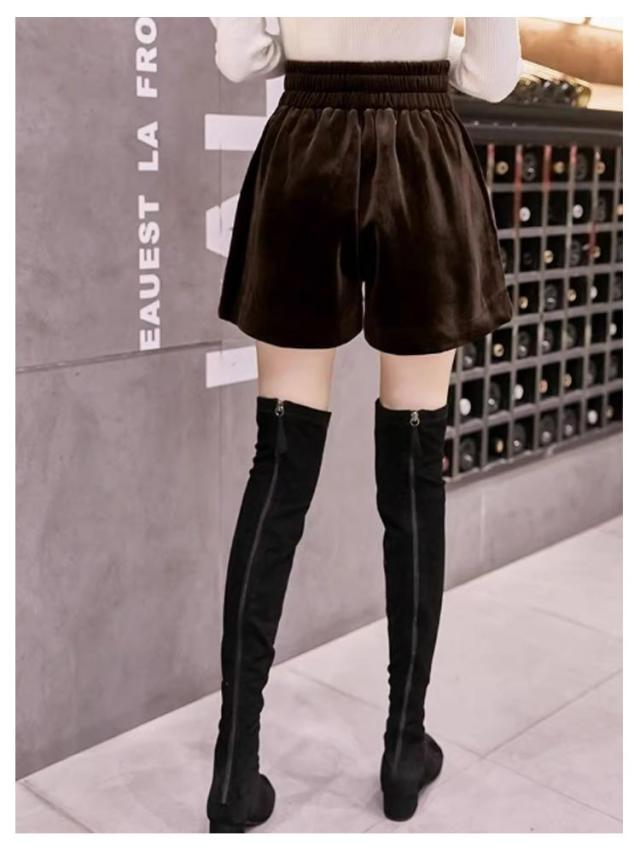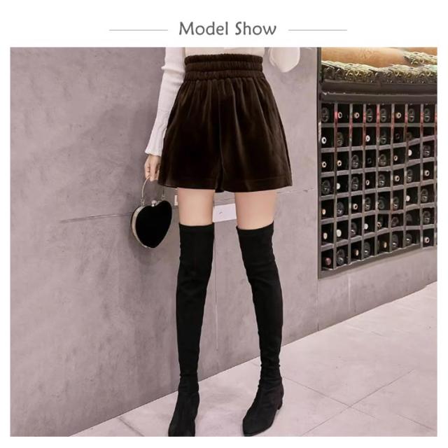 半ズボン ベロア ハイウエスト 秋 ベロアパンツ ワイドパンツ レディース 送料無料 ゆったり パンツ ベロア 冬 Aライン レディース 短パン ウエストゴム シンプル