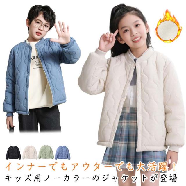 防寒着 キルティングジャケット 中綿コート 重ね着 子供服 秋冬 ノーカラー 中綿ジャケット 冬 ジャケット 暖かい キッズ 女の子 ブルゾン ジュニア 子供 男の子 コート アウター 子供服 無地 防寒 保温 軽量 通園 通学 子ども服 ギフト プレゼント