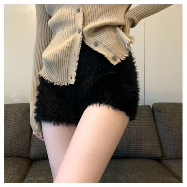 | もこもこモヘア調素材で可愛い3分丈ショートパンツ。 ハイウエストゴムで着たり脱いだりが簡単。 ルームウェアとしてもおすすめ。 ロングブーツとの相性抜群です。 この冬の主役ボトムスとして大活躍すること間違いなし。 | |