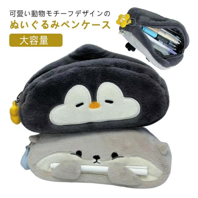筆入れ 顔 文房具 動物 ペン収納 ぬいぐるみ おもしろい 筆箱 もこもこ 小学生 カワウソ 小物入れ 大容量 コスメポーチ 中学生 ペンケース 収納ポーチ 軽量 ペンギン ペンケース かわいい おしゃれ 個性的 入学祝い プレゼント ギフト