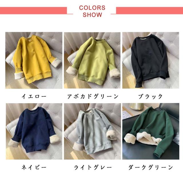 裏ボア 長袖 裏起毛 レディース レディース トップス 厚手 スウェットプルオーバー 無地 シンプル クルーネック パーカー カジュアル 秋冬 ゆったり トレーナー あったか ゆったり 体型カバー おしゃれ 大きいサイズ 重ね着 暖かい